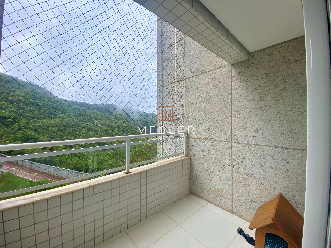 Pavimento Inferior: Sala para 2 ambientes, com piso em porcelanato, lavabo, varanda com vista deslumbrante para área de preservação, cozinha e área de serviço.