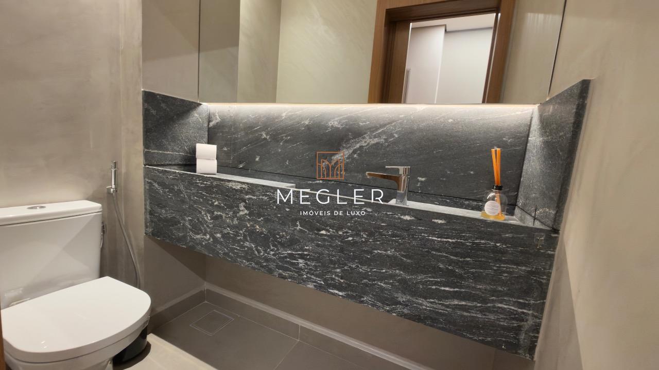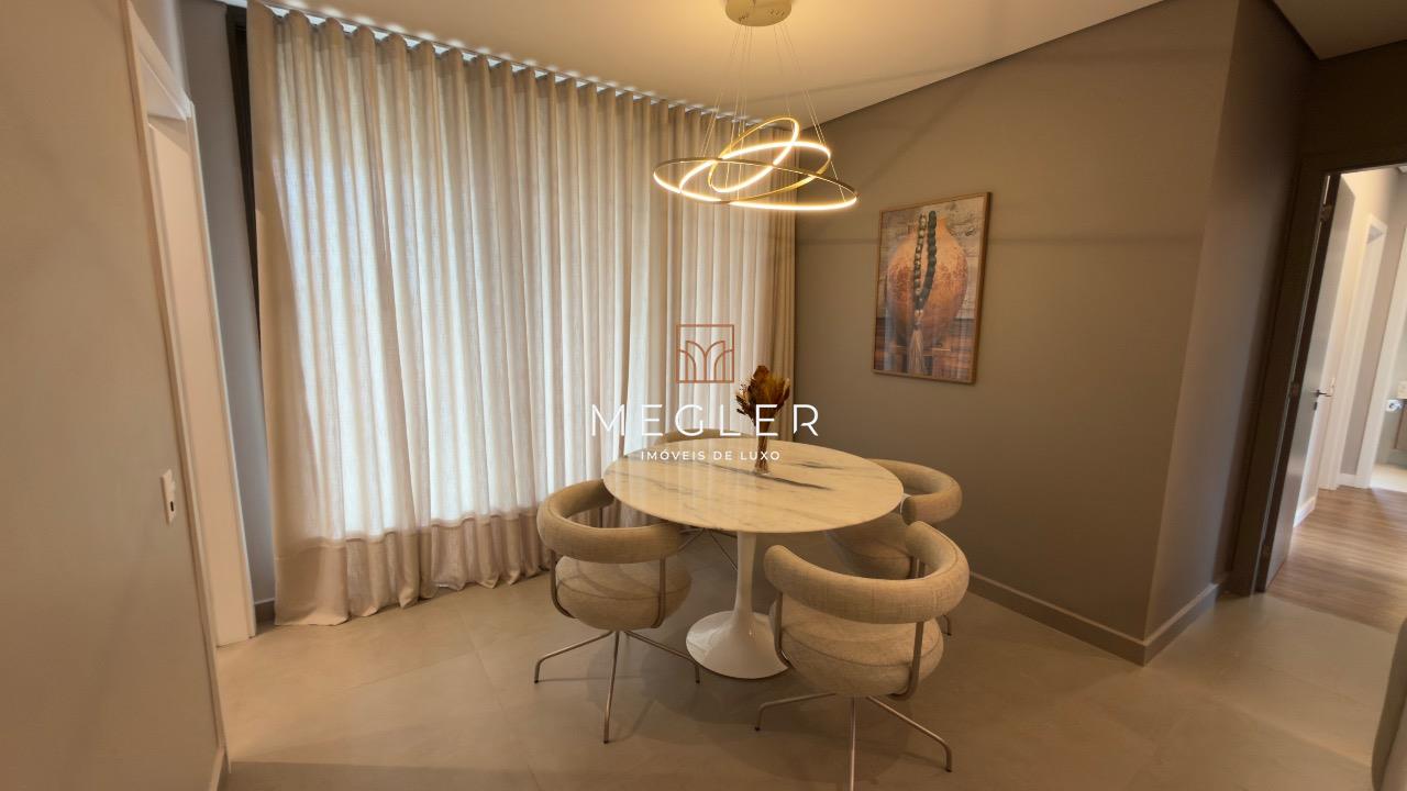 São 115m² distribuídos de forma inteligente em 3 quartos, sendo 1 suíte, sala ampla para dois ambientes integrada à varanda gourmet, cozinha americana, lavabo, área de serviço e banho social, todos os ambientes com mobília e decoração de alto padrão.