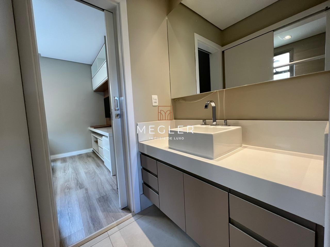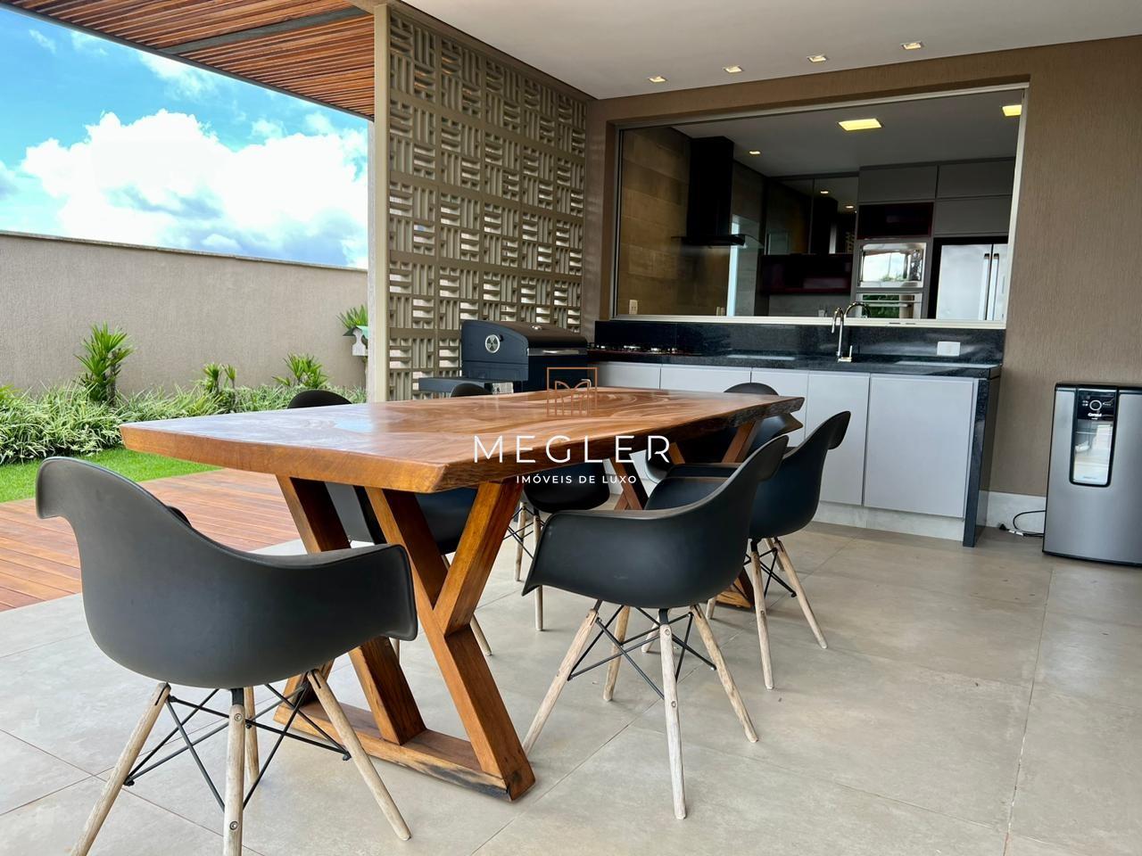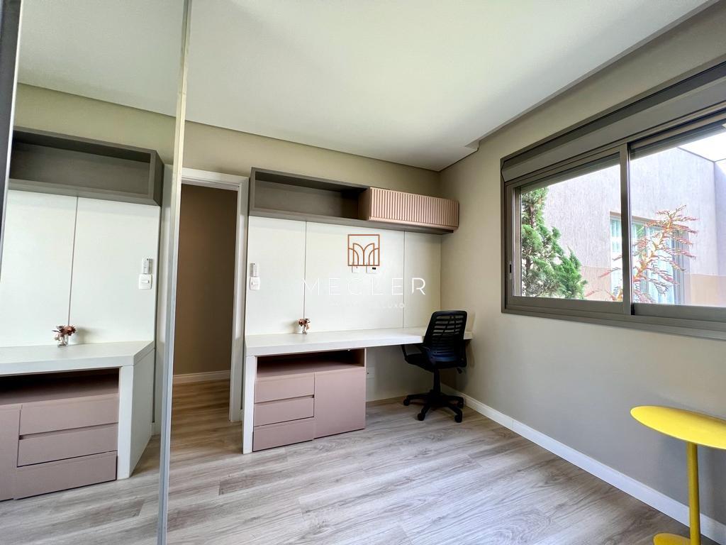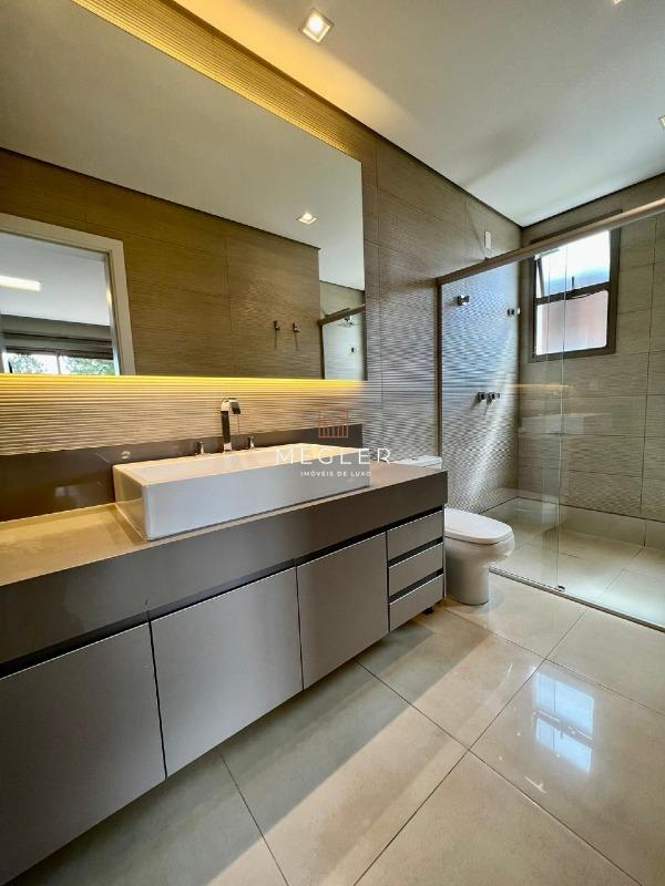 Acabamento em porcelanato e madeira, com lareira em travertino romano. O imóvel é mobiliado, tem escritório, closet, rouparia, despensa e armários planejados em todos os ambientes. e conta com DCE, área privativa e área de serviço.