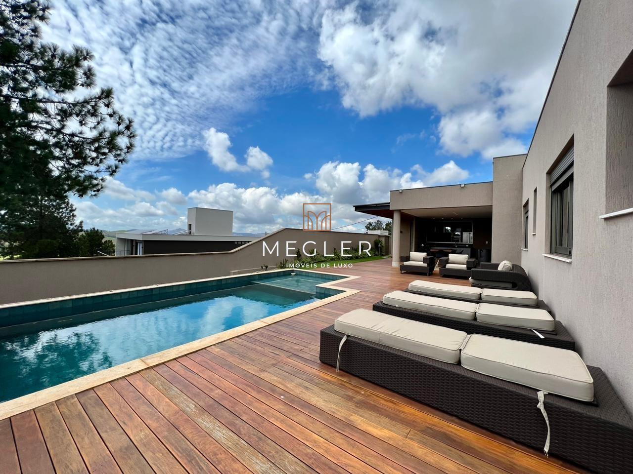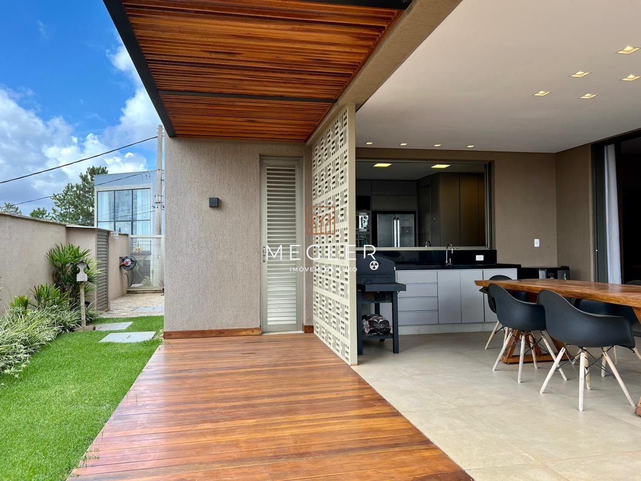 O projeto deste belíssimo imóvel é do renomado arquiteto Oscar Ferreira, com 227,20 m² de área coberta e mais 43 m² aproximadamente de área externa e piscina. A casa tem pé direito duplo no ambiente de sala e painéis em madeira, ripada, proporcionando elegância ao ambiente.