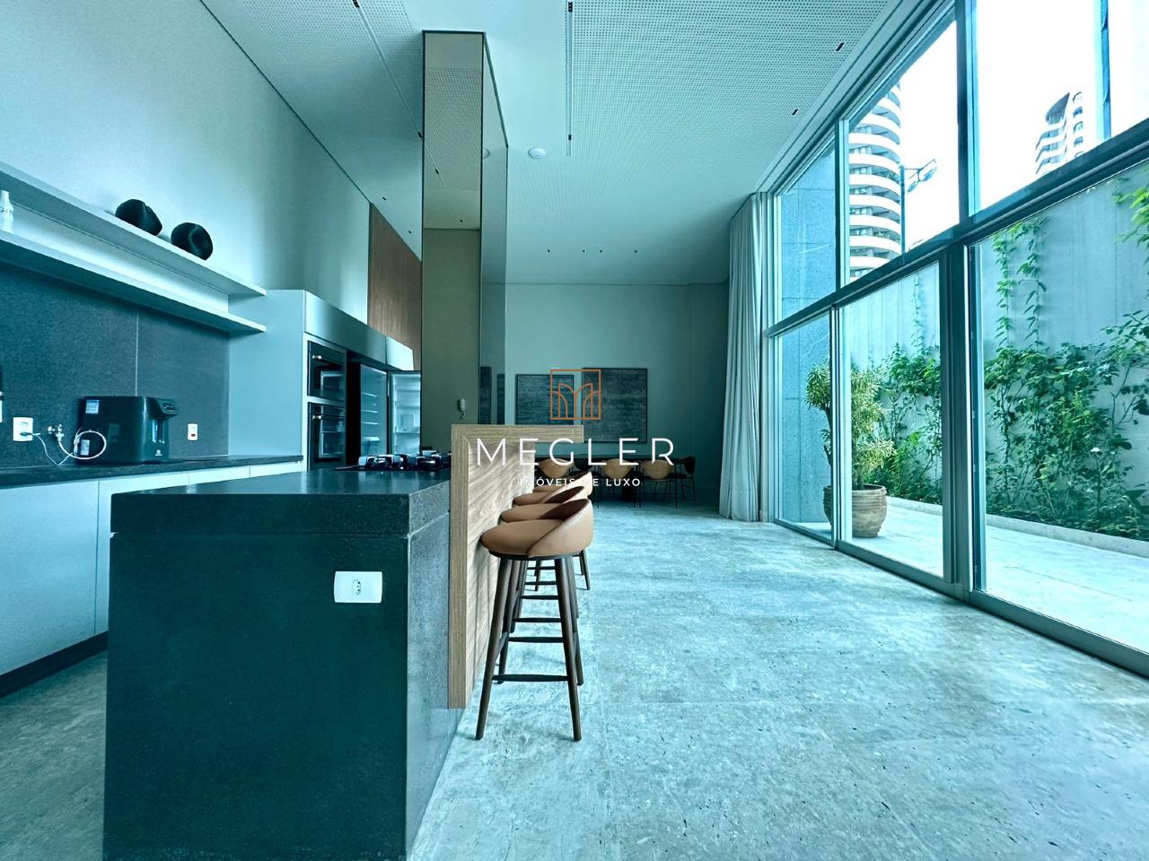 As janelas de grandes vãos, oferecem, além da vista maravilhosa, mais ventilação e iluminação natural. A cozinha com bancada em granito, cuba dupla, tanque em aço inox e metais de primeira.